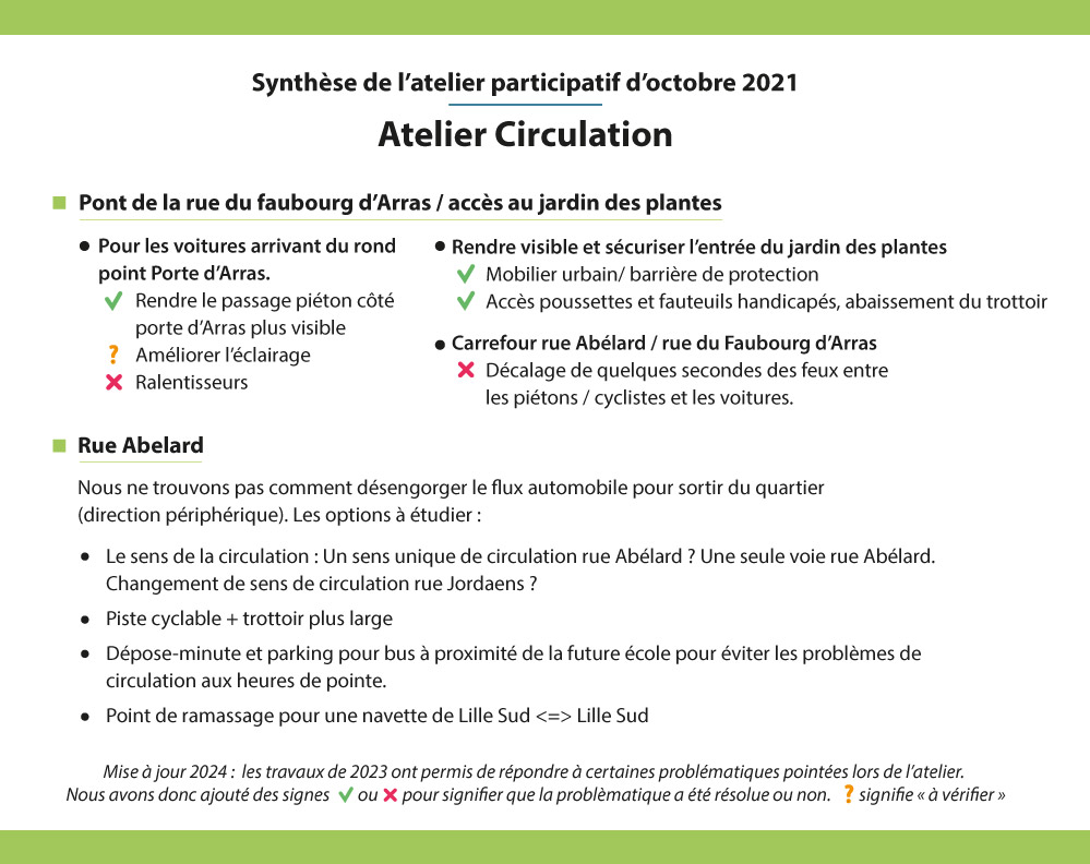 Pour rappel, un atelier réalisé en octobre 2021 avait abouti aux propositions suivantes :