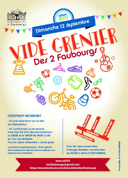 La braderie de rentrée du quartier des 2 faubourgs se déroulera le 12 septembre dans les rues Berthelot, Caventou, Le Fort et Michel Ange.