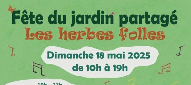 Nous sommes heureux de vous inviter à la fête du jardin partagé qui se déroulera le Dimanche 18 mai de 10h00 à 19h00 au Jardin Les herbes folles.